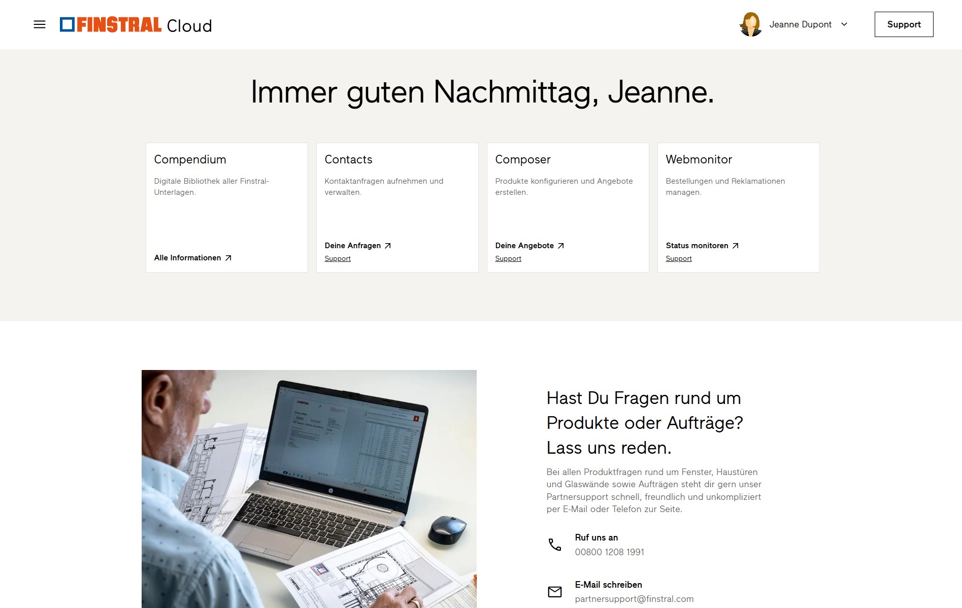 - Contacts, the Finstral solution for recording and managing contact enquiries (for Finstral employees, currently being rolled out to dealer partners)