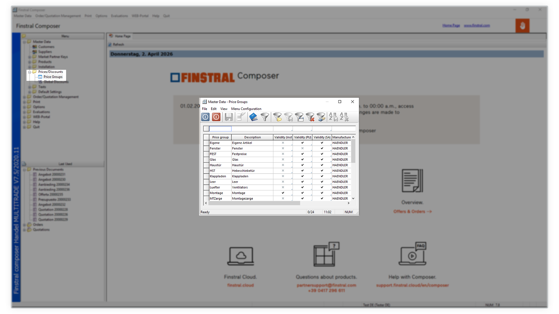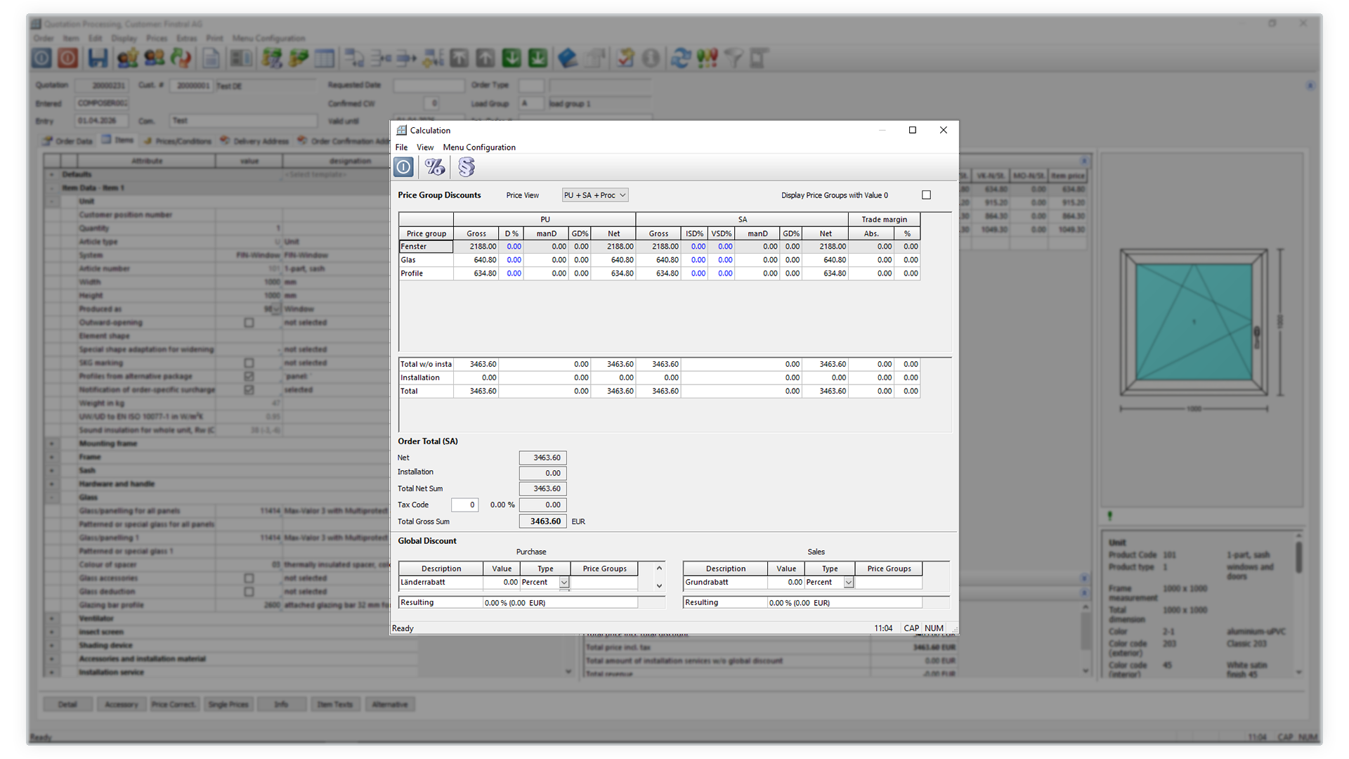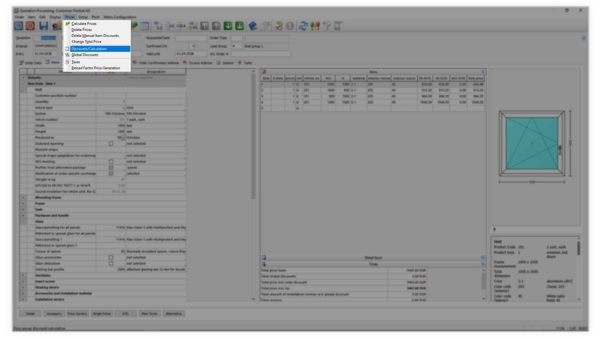 - You can also view these discounts directly in the quotation via the “Prices” > Discounts/Calculation menu and modify them afterwards.