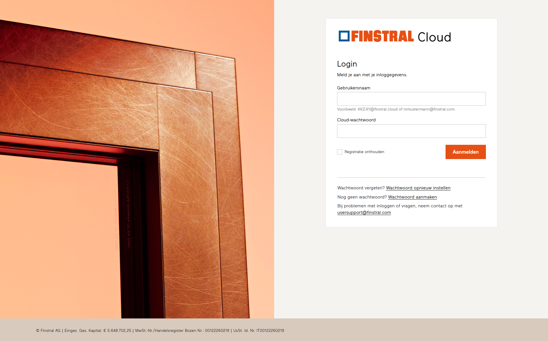 Je toegangsgegevens zijn identiek aan de login en het wachtwoord dat je al gebruikt voor Finstral Composer.